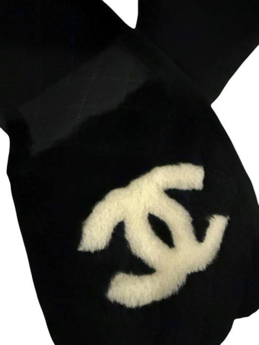Chanel 2019 Real Fur CC Black Stole Scarf