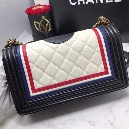 Chanel Crest Embellished Paris Limited Medium Boy Bag Flap Black White Blue